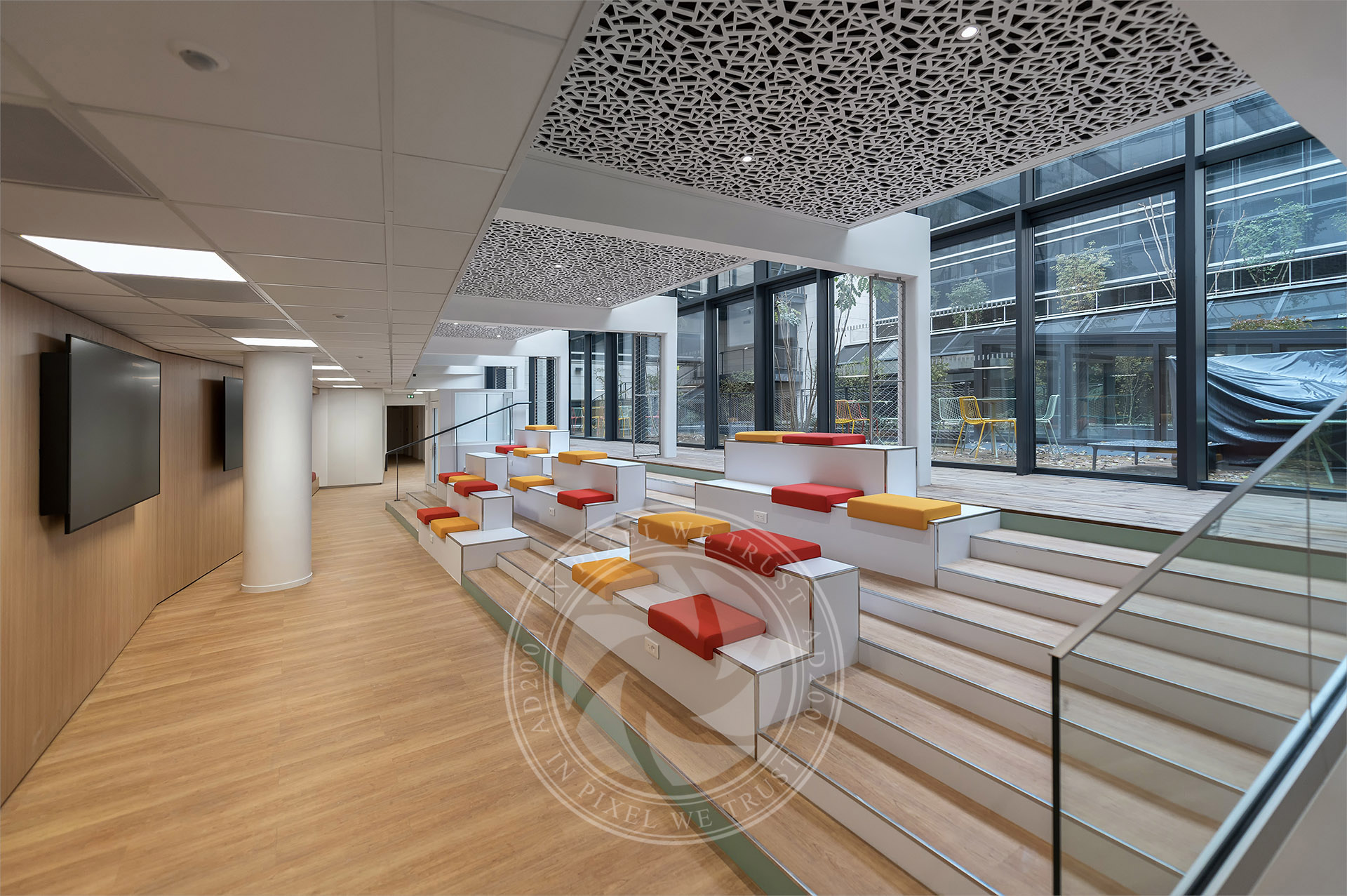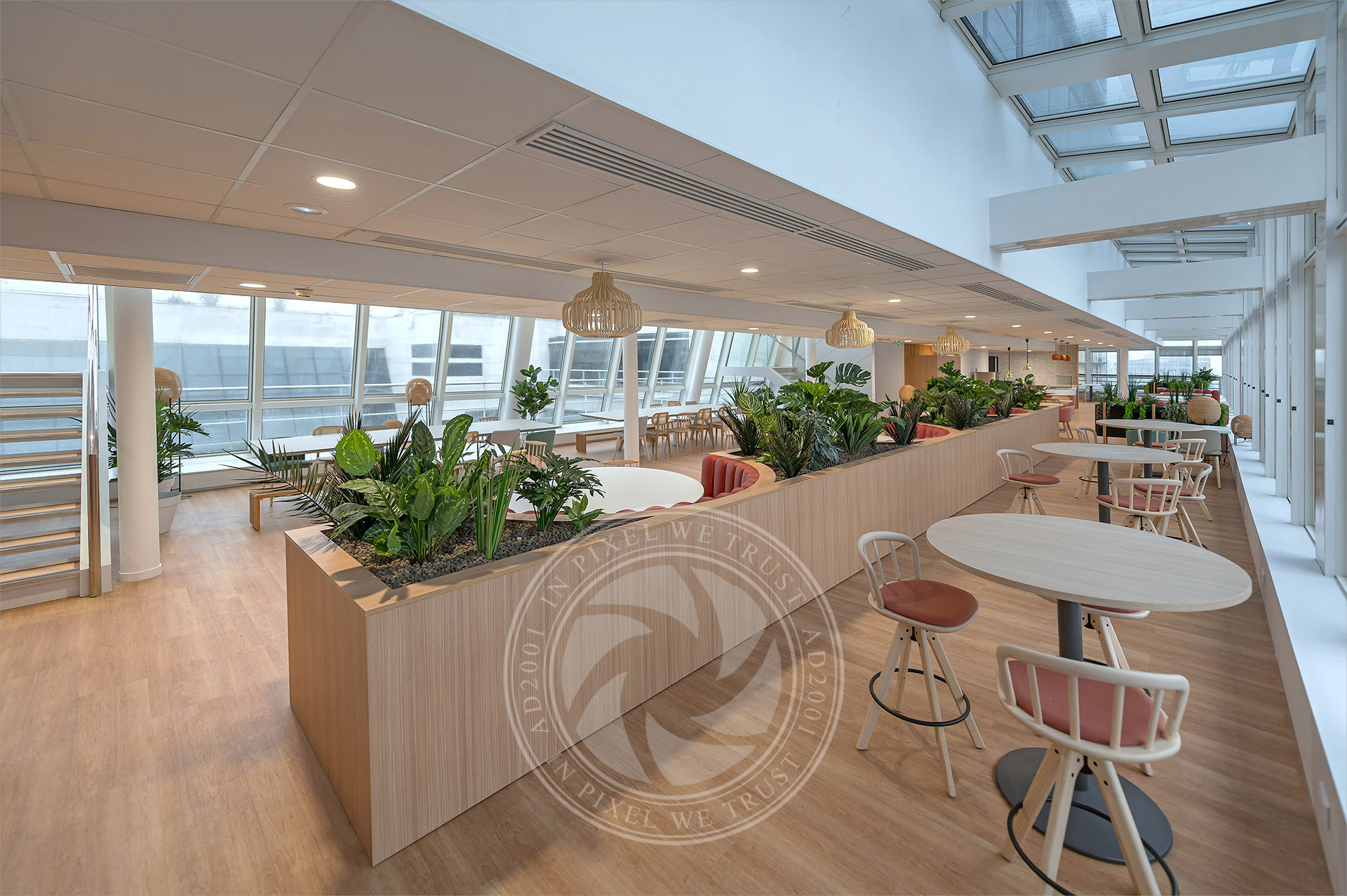 Services : bureaux, auditorium, terrasse-jardin, coworking, restauration, espace détente.